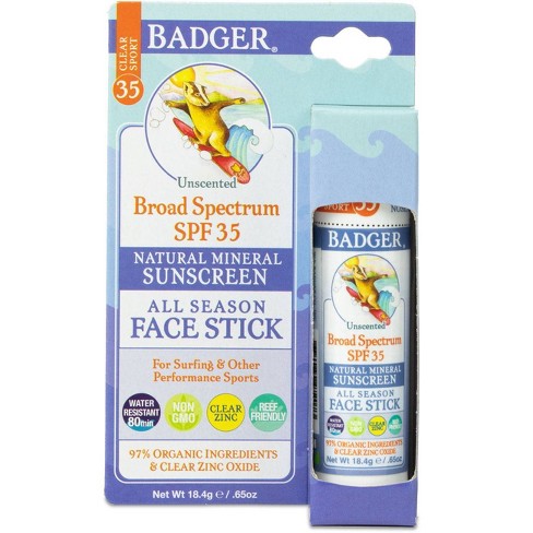 Amazon Com Badger Spf 35 Clear Zinc Sport Sunscreen Stick Unscented Broad Spectrum Water Resistant Reef Safe Sunscreen Natural Mineral Sunscreen With Organic Ingredients 0 65 Oz 2 Pack Beauty